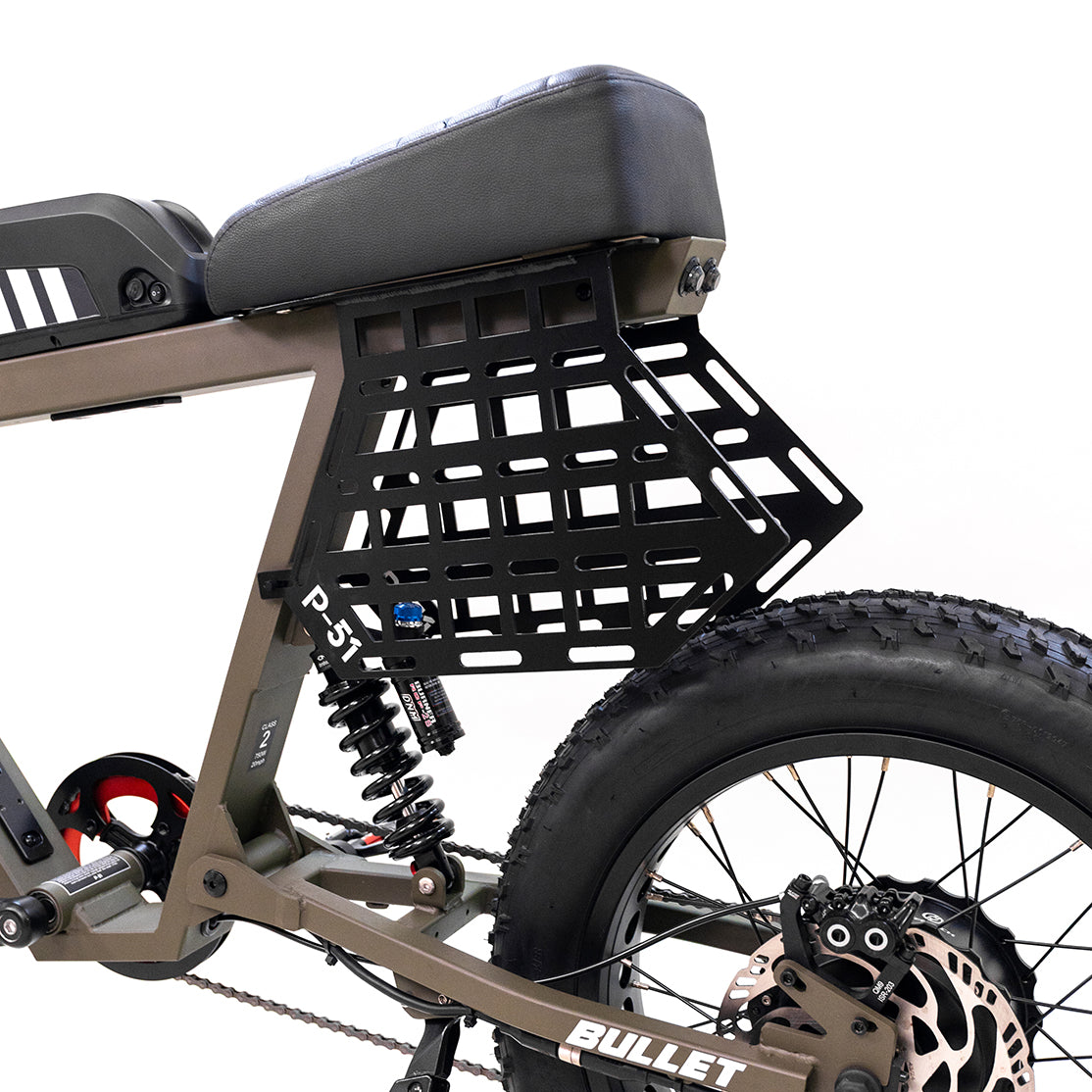 The P-51 Bullet Side MOLLE Panels are made from powder-coated aluminum and built to give you extra storage options on both sides of your Bullet. These come as a set with a panel for each side, mounting directly under the seat to add a ton of attachment points for bags and gear — all while giving your ride a seriously rad look.